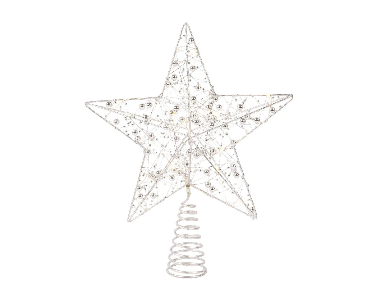 SKU: DGHLY 1695826695 Categories: Angels & Toppers, Tree Decorations Tags: Collection:New For 2023, Color:Silver, Light Options:Battery Operated, Size:11", Style:Star Tree Topper