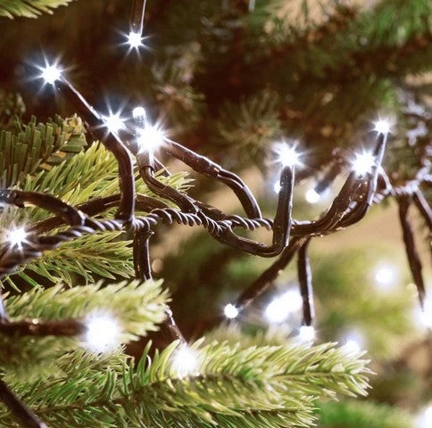 These energy efficient LED lights are a must have for every season. Compact 1500 LED Bulbs, Cool White on Brown wire with 8 Function Twinkle. Enjoy the new non tangle technology, LED diode lasts much longer & the lifespan is at least 50,000 hours.