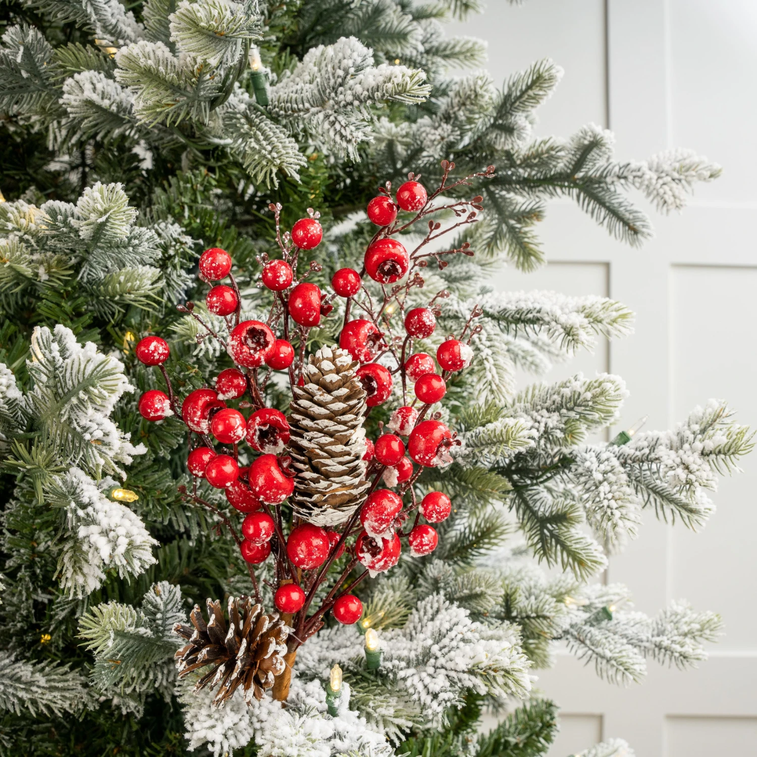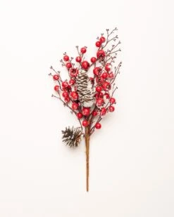 16″ Red Snow Berry Twig With Pinecones Set Of 6