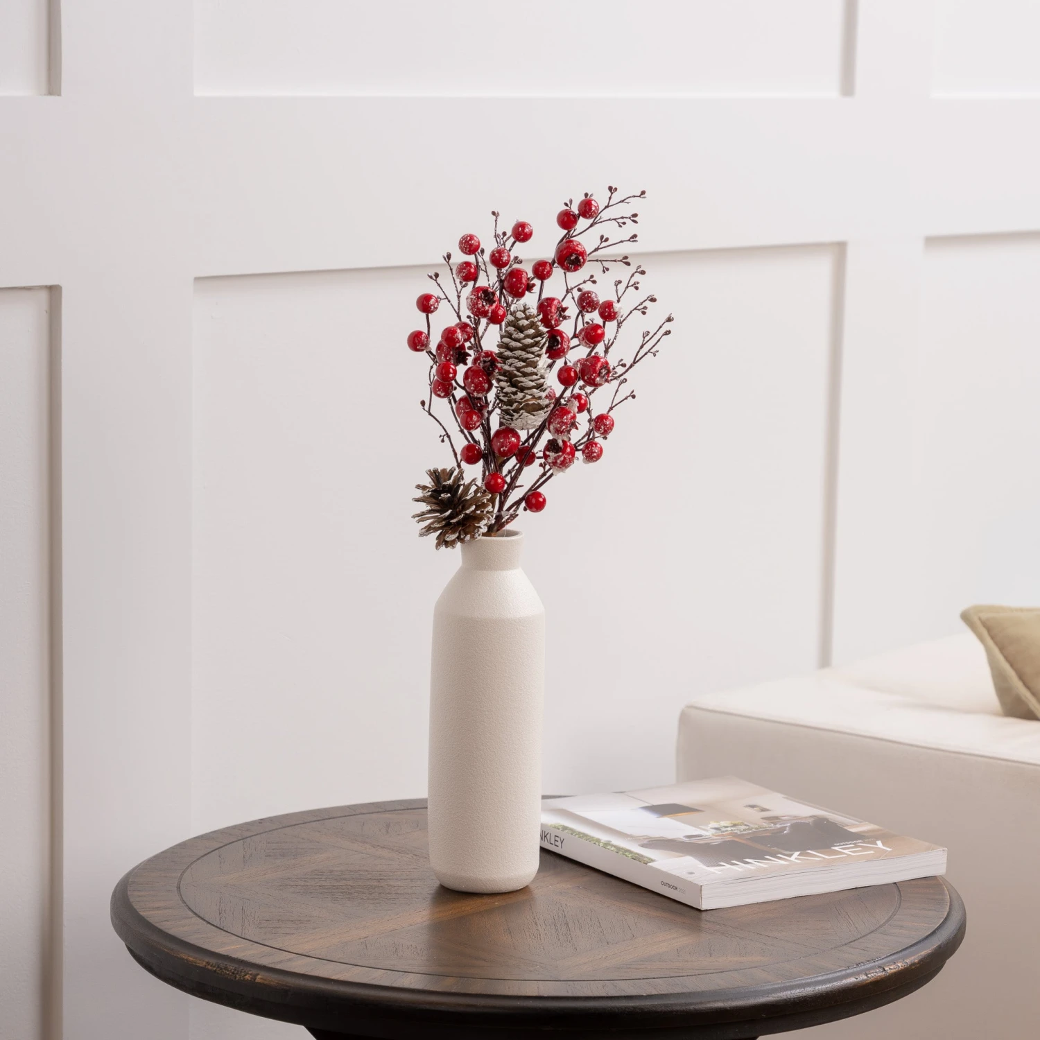 Bringing a dash of delight and rustic with our red snow berry twig with pinecones. They are an ideal addition to your faux or fresh florals for a richer, fuller flourish. Add to a mix of other flowers like roses, peonies, hydrangeas, orchids, or amaryllis buds for a lush and lovely floral creation.