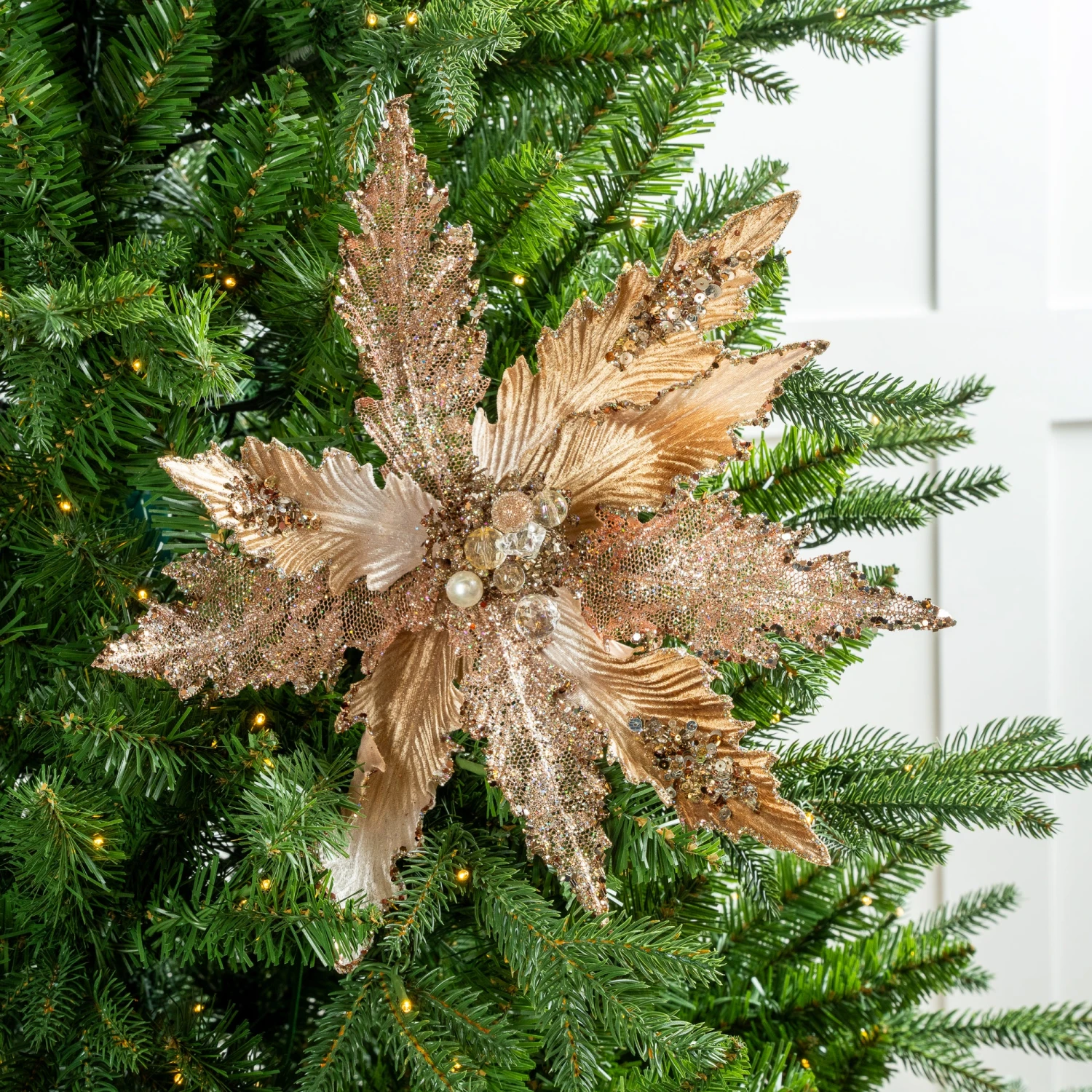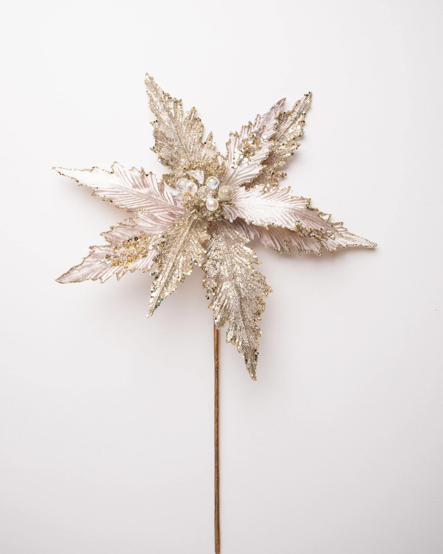 Perfect for accenting Christmas decor or for use year round! This platinum poinsettia is pure bliss! It surely adds a unique, finish to your floral arrangements.