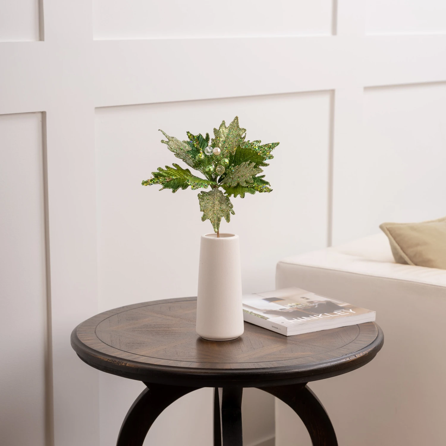 Complete your whimsical theme with this bold and beautiful green jeweled poinsettia stem. The sequined coating softens this shiny emerald green stem complete with a eye-catching center. Mix these stunning flowers into a garland and enhance your mantle or add dimension to your tree and finish the look with jolly Christmas characters, red and green shatterproof balls, and patterned ribbon.