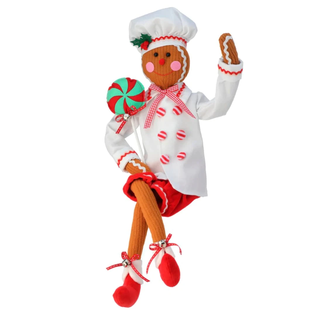 Decorate for the Holidays with this sweet Plush Gingerbread Chef Sitter. They can fit just about anywhere in your house. Looks great on a table setting, mantle or in your favorite Holiday Décor. This is just the right size for a Kitchen, kids’ room, or any other area of the home you are looking to place Holiday Décor.