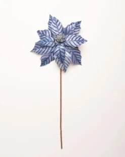 24″ Blue Metallic Veined Poinsettia Stem Set Of 12
