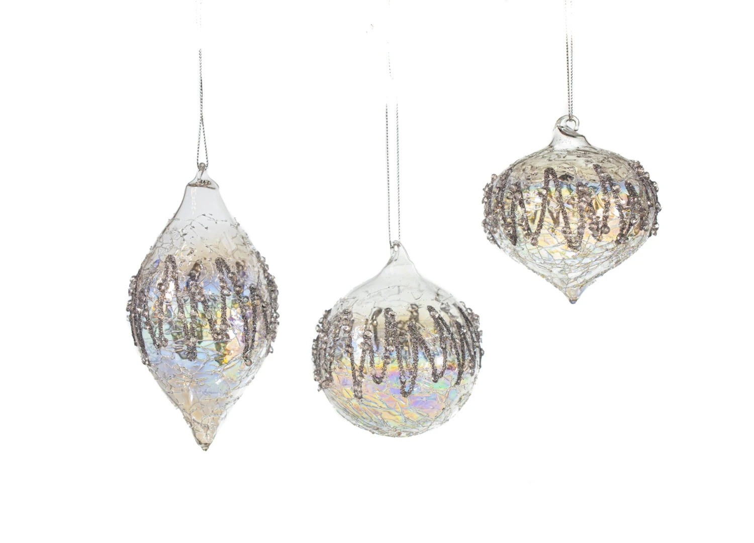 Add this unique Christmas ornament to your holiday decor. Features iridescent glass, encrusted with sparkly beads and sequins. The perfect touch of elegance to your tree.