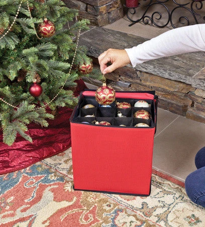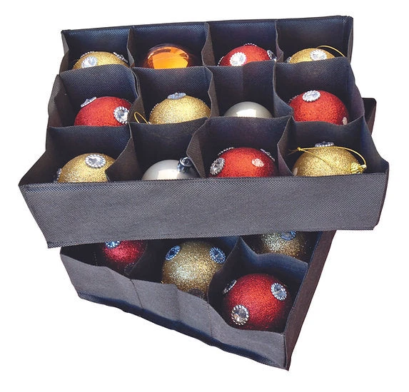 Use our premium 48ct Ornament Storage Tub to store and protect 48 of your most special ornaments that are up to 3in in diameter. This flat-to-full structured tub with a heavy duty polyester exterior, and plastic-paneled interior, includes 4 preassembled and removable ornament trays and a convenient carrying handle.