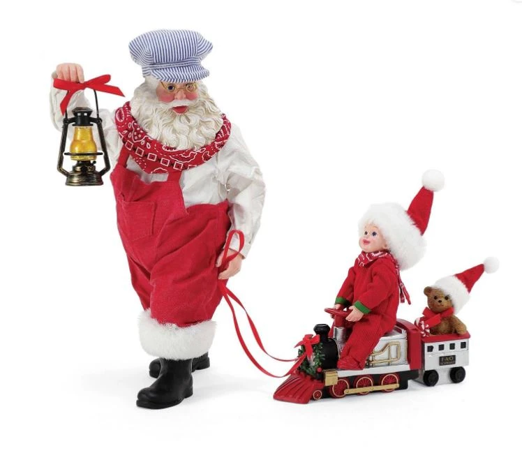 Founded in 1862, F.A.O. Schwarz is synonymous with quality and innovation, offering one-of-a-kind playthings and creating cherished memories for generations of children. Santa is dressed in Clothtique fabric overalls in this 2 piece collectible set.